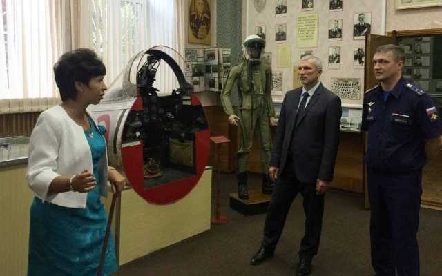 Знакомство с ВВАУЛ началось с осмотра замечательного музея боевой славы. Затем состоялась встреча с командирами Борисоглебского высшего военного авиационного училища летчиков им. В.П.Чкалова.
