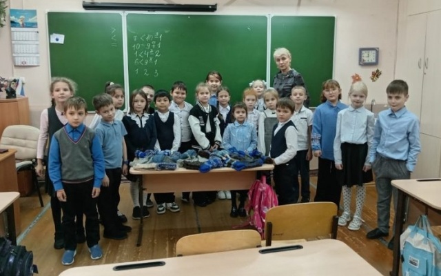 Ученики 1 "Б" класса средней школы №173 (классный руководитель Татьяна Германовна Бермес) передали в общественную приемную депутата Законодательного Собрания Новосибирской области от партии "РОДИНА" Вячеслава Илюхина теплые носки для воинов, участвующих в специальной военной операции.