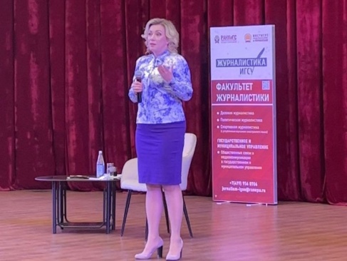 К концу выступления директор департамента информации и печати Министерства иностранных дел Российской Федерации дала советы будущим журналистам.