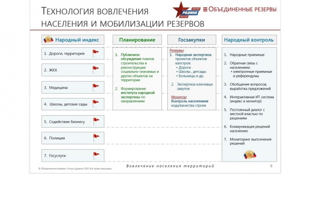 Секретарь Политсовета партии "РОДИНА", руководитель Федерального избирательного штаба Михаил Колчев добавил также, что "пришла пора самим выбирать путь, куда двигаться. Нам выбирать путь куда идти. То правительство, которое делает до сих пор антикризисный план - мы с ним никуда не придём, надо менять курс. Мы должны разбудить "диванную партию", чтобы они пришли на выборы и сделали правильный выбор. Нужно готовиться: идти на выборы и побеждать".
