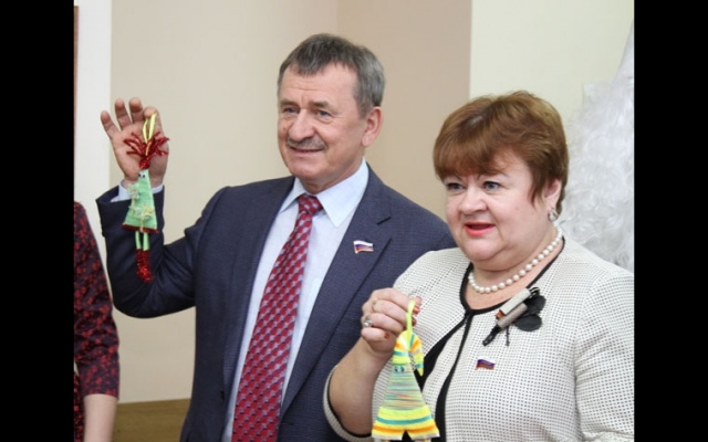 В завершение депутаты тепло поздравили детей и вручили подарки: часы "Шар-папье", столовые наборы и подсвечники в виде Деда Мороза или снеговика, которые можно раскрасить на свой вкус.