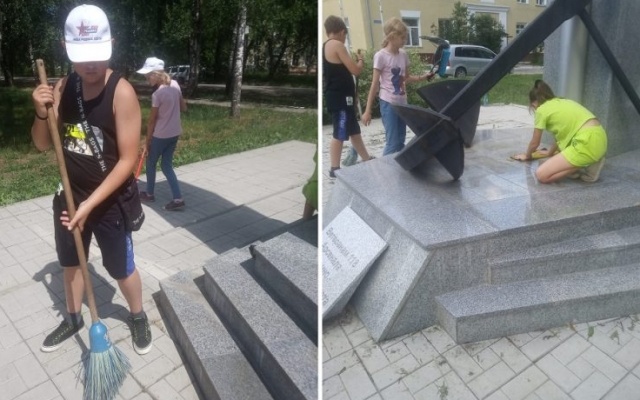 Накануне Дня памяти и скорби ребята из трудового отряда школьников привели в порядок памятник ветеранам 118 Арсенала Военно-морского флота в жилом районе Пашино.