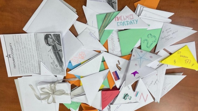 Ученики школ новосибирского микрорайона "Юбилейный" передали в Клуб избирателей депутата Заксобрания Новосибирской области от партии "РОДИНА" Вячеслава Илюхина более сотни писем, которые школьники написали воинам, выполняющим задачи СВО.
