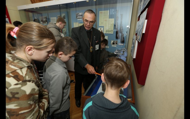 Прямо во дворе музея, под открытым небом развернулась экспозиция из боевой техники и дети могли осматривать зенитки до бесконечности. В залах – многотонные пушки и порядка 800 других экспонатов военной тематики, от Гражданской войны до наших дней. В их числе – боевые знамена периода Гражданской и Великой Отечественной войны, боевая техника, огнестрельное и холодное оружие, награды и знаки отличия, военная форма и снаряжение, личные вещи, документы. Обойдя экспозицию с экскурсоводом, ребята узнали много интересной информации о Великой Отечественной войне.