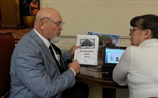 Сергей Леонидович поделился с Натальей Михайловной своими архивными исследованиями по истории строительства данного храма. Также стороны обсудили исторические факты, повлиявшие на судьбу региона, где сходились два шляха - Муравский и Изюмский - в село Скородное. В этом районе на среднерусской равнине, находится самая высокая точка над уровнем моря - 277 метров. В 2024 году Сергей Еськов собирается выпустить книгу «Из прошлого в будущее», в которой будет отражена история данного храма, малой родины и его рода.